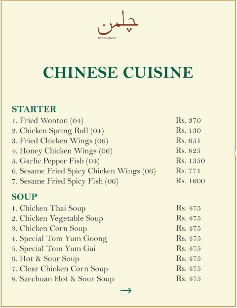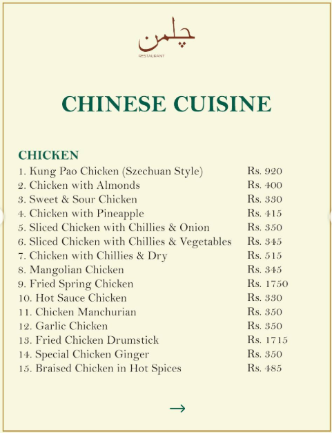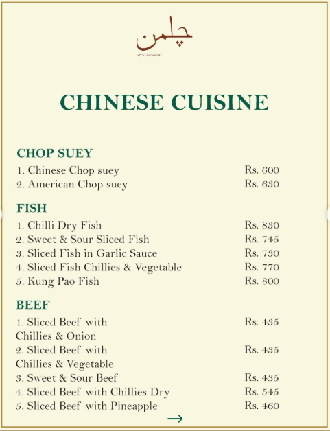 Chilman Restaurant Islamabad is a modern dining spot offering a wide variety of traditional Pakistani, Chinese, and continental dishes. Their Nashta, Chicken & Mutton specialties, and Buffet options are popular among customers. With both dine-in and outdoor seating, it is ideal for casual meals and family gatherings.
