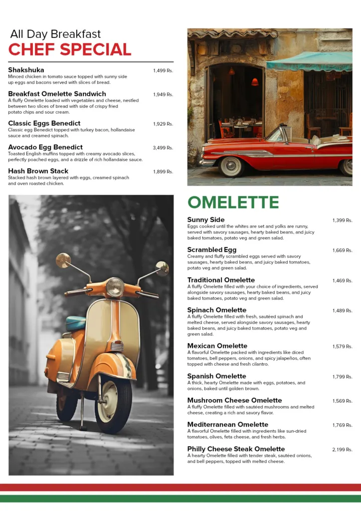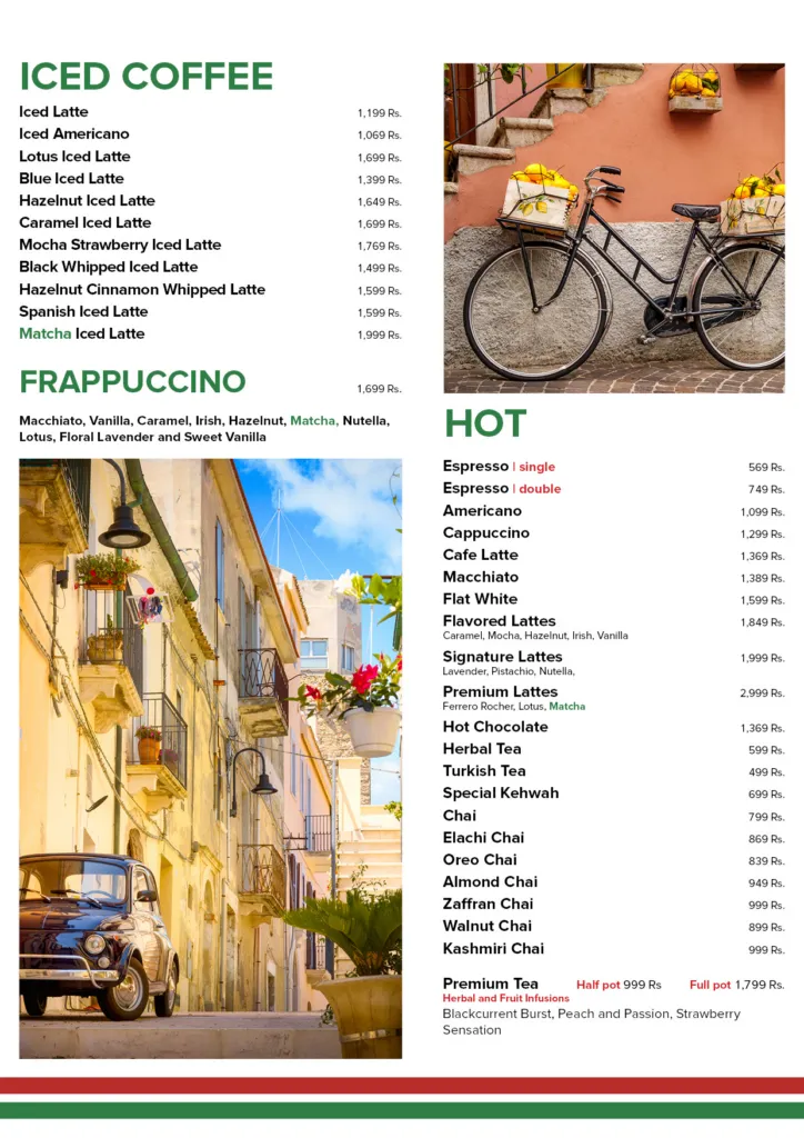 La Terrazza Restaurant presents one of Islamabad’s most diverse premium menus, covering breakfast specialties, international starters, Pan Asian cuisine, Italian pizzas and pasta, gourmet steaks, seafood, desserts, specialty coffees, mocktails, smoothies, and more. Located at The Centaurus Mall, it serves guests daily from 11:30 am to 11 pm, making it an ideal destination for family meals, business lunches, brunch meetups, and special celebrations.