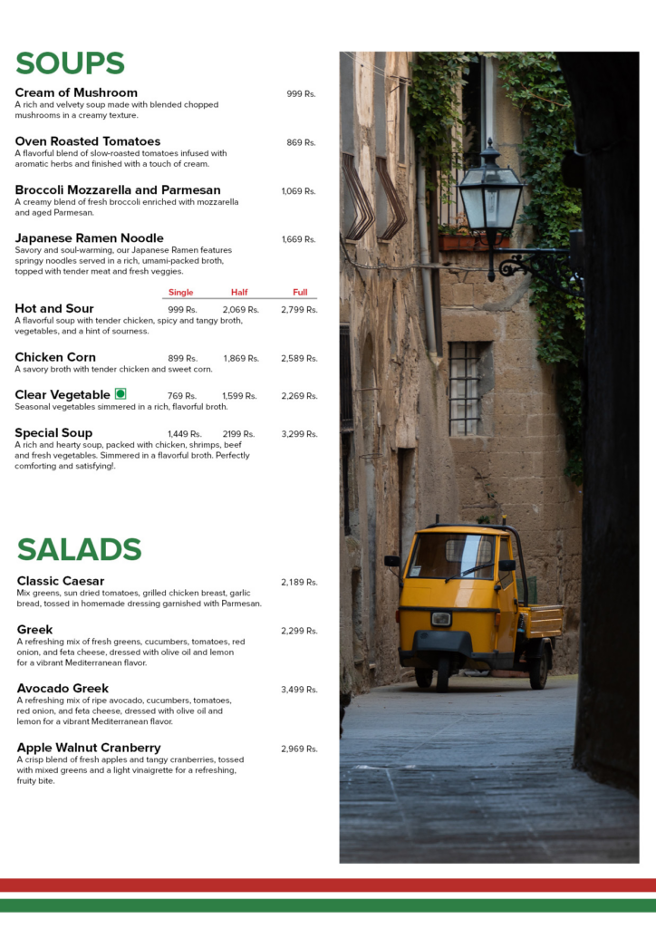 Located in the heart of Islamabad at The Centaurus Mall, La Terrazza Restaurant offers a premium dining experience with an extensive international menu. From all-day breakfast and gourmet omelettes to artisan Italian pizzas, steaks, seafood, Pan Asian specialties, desserts, and an elaborate beverage selection, the restaurant caters to every taste. Whether you’re visiting for brunch, lunch, dinner, coffee, or desserts, La Terrazza provides a stylish ambiance and a wide culinary variety under one roof.