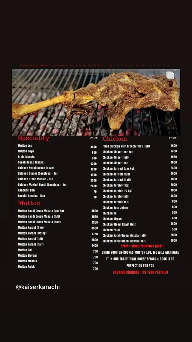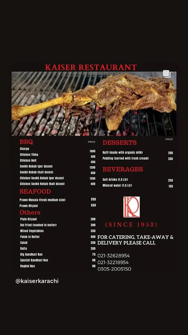 Kaiser Restaurant is a well-known traditional Pakistani restaurant located near Lighthouse in Saddar, Karachi. Famous for its rich desi flavors, generous portions, and affordable pricing, Kaiser Restaurant is especially popular for karahi, BBQ, brain masala, biryani, and mutton dishes. With a long-standing reputation among locals, it remains a go-to spot for families, office workers, and food lovers looking for authentic Pakistani cuisine.