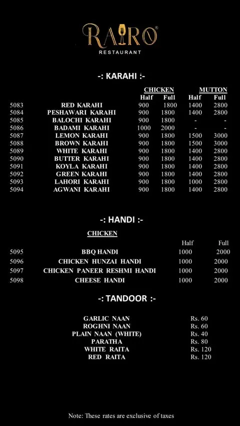 Rairo Restaurant is a popular multi-cuisine dining spot located in P.E.C.H.S., Karachi. It is well-known for its extensive menu that includes continental starters, steaks, Chinese food, burgers, BBQ, karahi, seafood, pasta, and signature drinks. With dine-in, outdoor seating, takeaway, delivery, and online reservations, Rairo Restaurant is a great choice for families, friends, and casual gatherings.