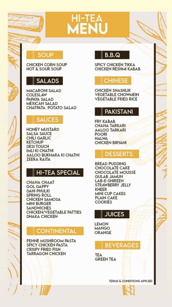 Important Note: Hi-tea starts from 4:00 PM to 6:00 PM (Always confirm before going).