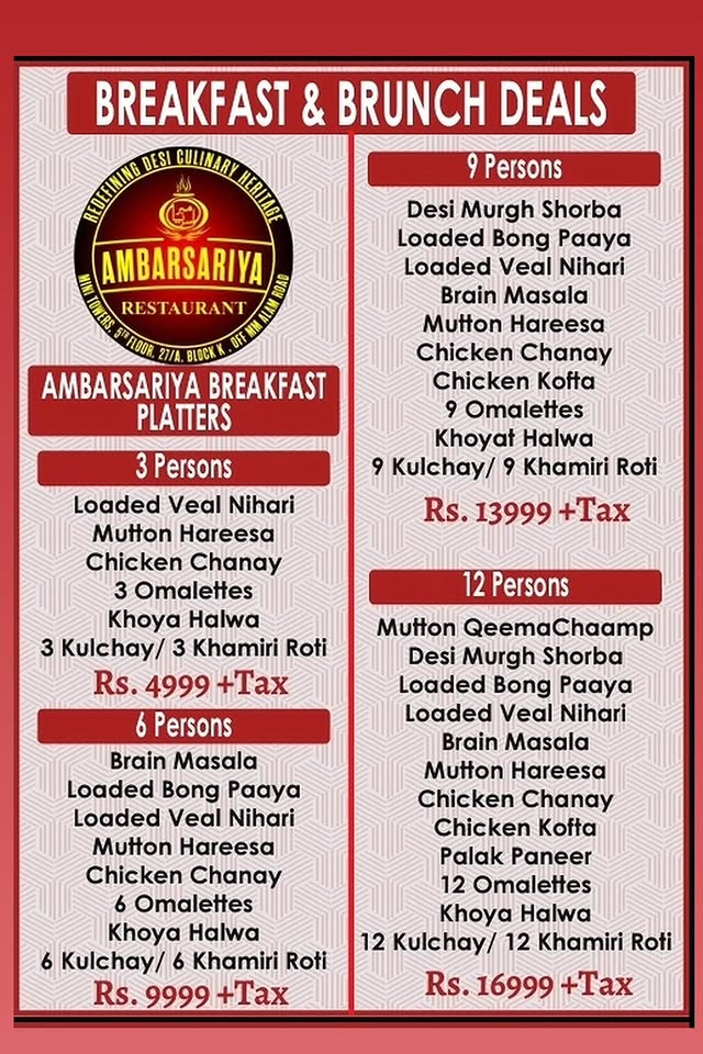 Ambarsariya Restaurant Lahore is ideal for large gatherings, family dinners, corporate meals, and traditional Punjabi feasts. With its wide variety of karahis, khadda platters, shahi deals, breakfast spreads, and catering options, it stands out as one of Lahore’s most premium desi dining experiences.