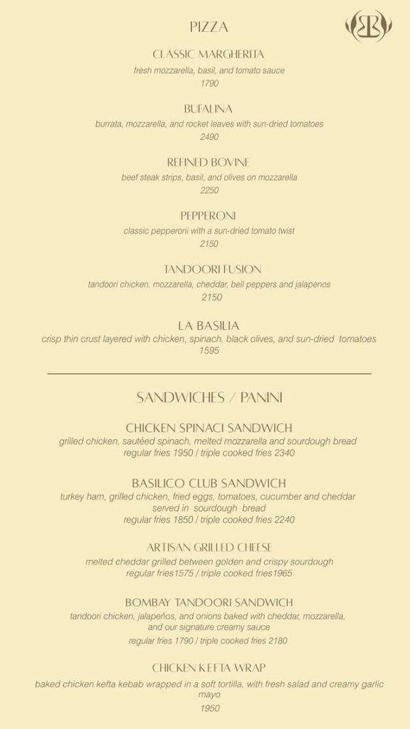 Basilico by Sara is a premier dining destination in Lahore offering a wide variety of Italian-inspired dishes, fresh seafood, gourmet burgers, pastas, pizzas, and decadent desserts. With a mix of indoor and outdoor seating, friendly service, and unique flavor combinations, it is ideal for casual dining, family outings, or enjoying meals while watching sports. Their menu caters to a wide range of tastes, including vegetarian options, and features exciting deals and beverages to complement the meals.