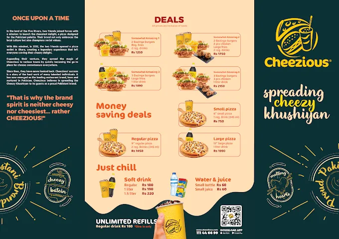 Cheezious has built a strong reputation as one of the most popular fast-food destinations in the city. It is especially loved by pizza enthusiasts who appreciate bold flavors, generous toppings, and premium ingredients. From creamy Malai Tikka and spicy Peri Peri pizzas to satisfying burgers and freshly prepared starters, the menu is designed to suit every taste preference. The brand focuses on delivering consistent quality, rich taste, and a fulfilling dining experience whether you visit the outlet or order at home.
