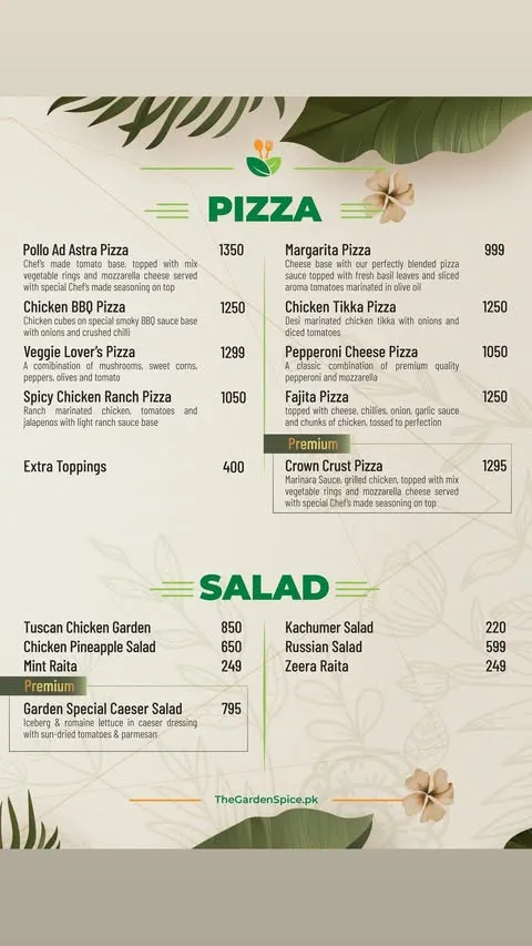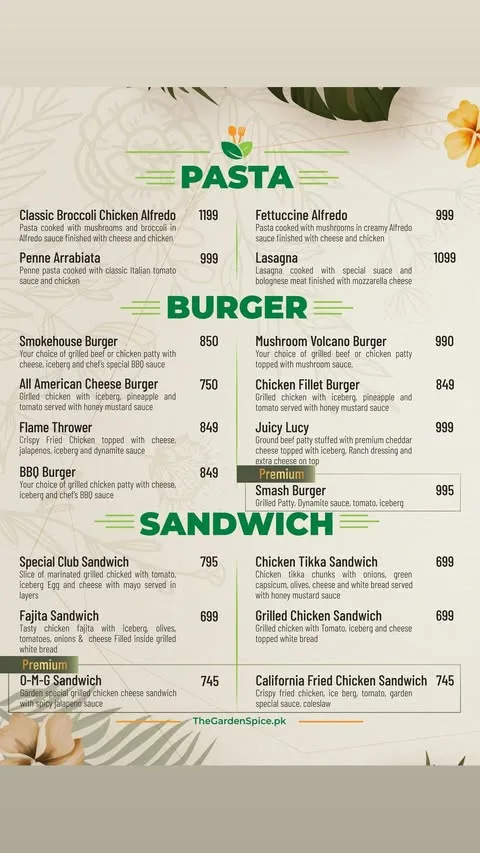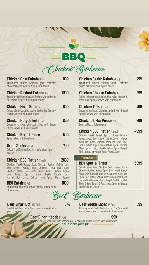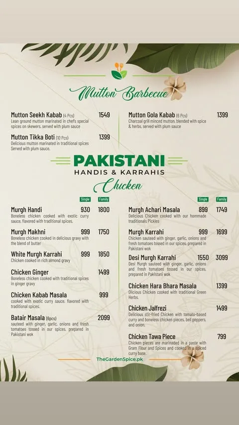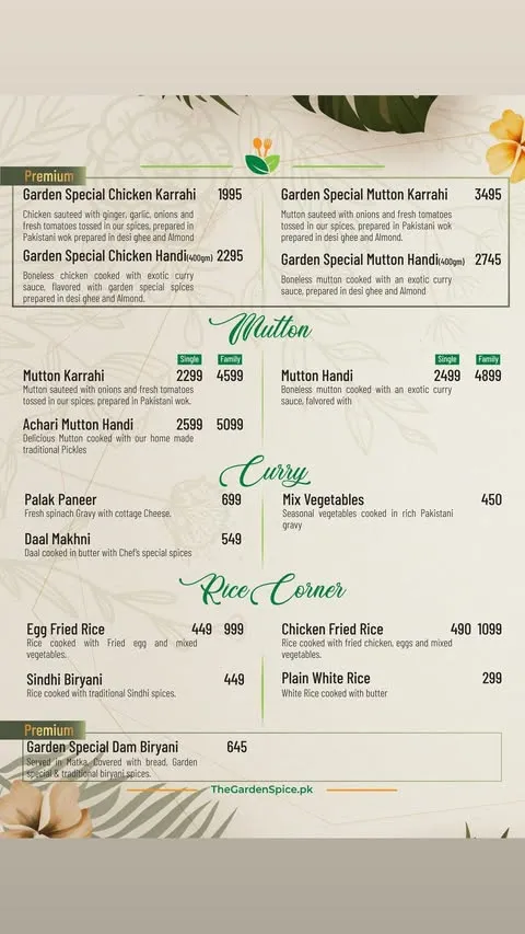 The Garden Spice is a well-known restaurant that has gained popularity for its rich flavors and diverse menu inspired by traditional and continental cuisine. It is especially famous for its freshly prepared dishes, including flavorful curries, grilled specialties, and a variety of signature items made using high-quality ingredients and authentic recipes. The restaurant offers a range of options that appeal to both casual diners and food enthusiasts looking for a satisfying and delicious meal.