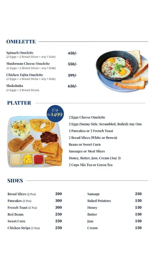 Doctor Lounge Restaurant in Gulgasht Colony, Multan offers a diverse menu including traditional breakfast options, omelettes, platters, pasta, grilled chicken, injected broast, burgers, premium and healing pizzas, desserts, coffees, smoothies, shakes, mocktails, and mojitos. With extended operating hours till 3 AM, it provides a comfortable dine-in experience for families and groups. From Lahori Chanay and Paratha Thali to Smash Burgers, Stuffed Crust Pizzas, and specialty beverages, Doctor Lounge combines desi flavors with modern café-style dining under one roof.