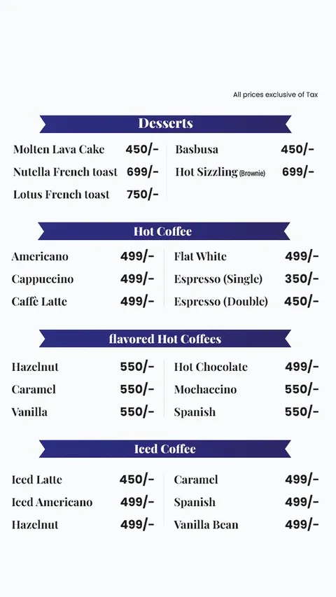 2 Eggs Cheese Omelette, 2 Eggs (Sunny Side, Scrambled, Boiled) Any One, 2 Pancakes or 2 French Toast, 2 Bread Slices (White or Brown), Beans or Sweet Corn, Sausages or Meat Slices, Honcy, Butter, Jam, Cream (Any 3), 2 Cups Mix Tea or Green Tea