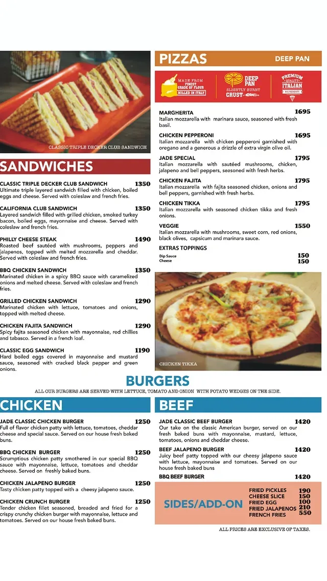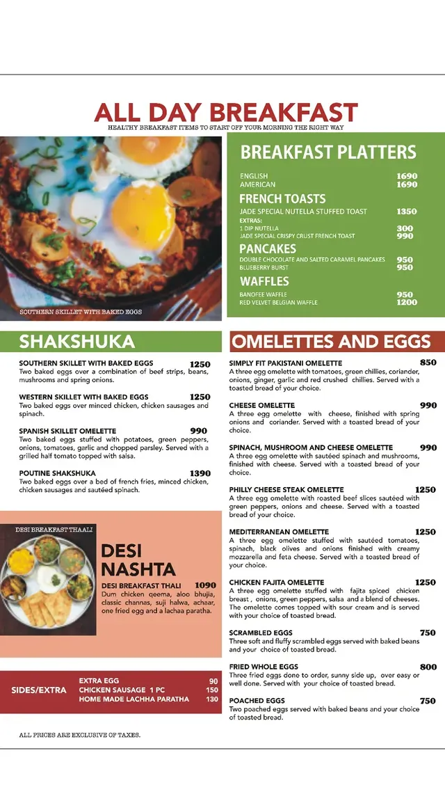 Jade Café Multan is a premium dining destination located on Main Abdali Road, offering a wide variety of international and continental cuisine. Known for its stylish ambiance, all-day breakfast options, gourmet burgers, pastas, pizzas, Asian bowls, and Chinese specialties, Jade Café is a popular spot for families, friends, and business meetups. The café focuses on high-quality ingredients, detailed presentation, and a diverse menu that caters to breakfast lovers as well as dinner enthusiasts.