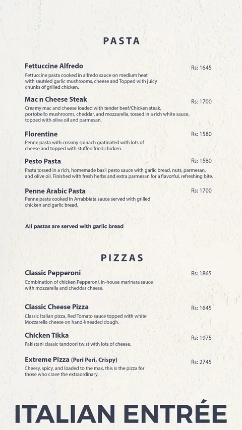 🍝 Pasta Menu