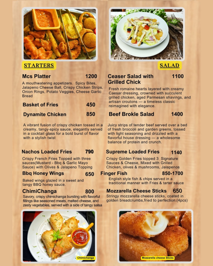 Multan Cafe Stop (MCS) is a popular all-day dining restaurant located on Multan Public School Road, Multan. Known for its wide variety of desi breakfast options, continental dishes, sizzling steaks, pizzas, burgers, hi-tea platters, and refreshing beverages, MCS offers a complete food experience from early morning till late night.