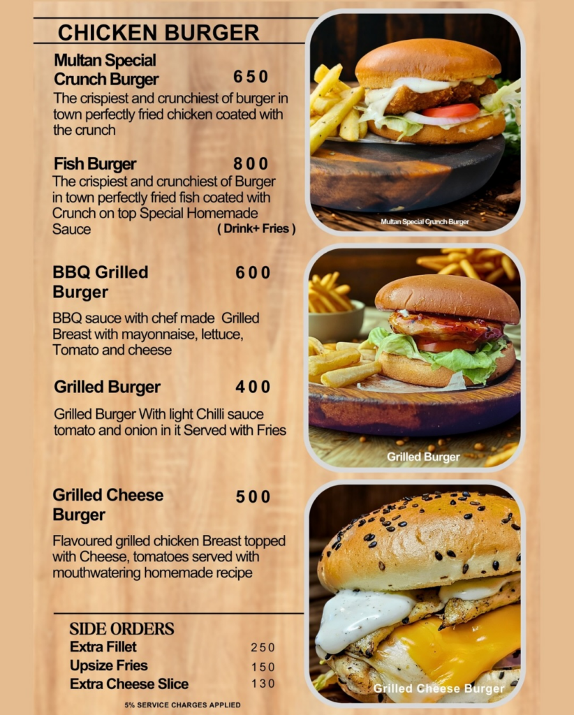 Multan Cafe Stop (MCS) is a complete dining destination on Multan Public School Road, offering an extensive menu that covers traditional desi breakfasts, English breakfast platters, soups, starters, steaks, stuffed specialties, pizzas, burgers, sandwiches, kids’ meals, hi-tea platters, mocktails, summer drinks, and hot beverages. With service available from 8 AM to 2 AM, it is suitable for breakfast gatherings, family dinners, casual meetups, and late-night dining. The diverse menu and wide price range make it a convenient choice for both small and large groups in Multan.