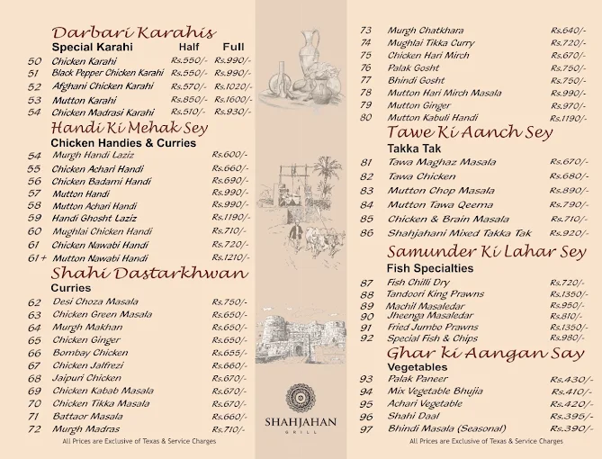 Shahjahan Grill Multan offers one of the most extensive menus in the city, covering desi, Chinese, continental, and traditional flavors under one roof. With its wide variety of dishes, reasonable prices, and family-friendly environment, it remains a reliable dining destination for locals and visitors alike.