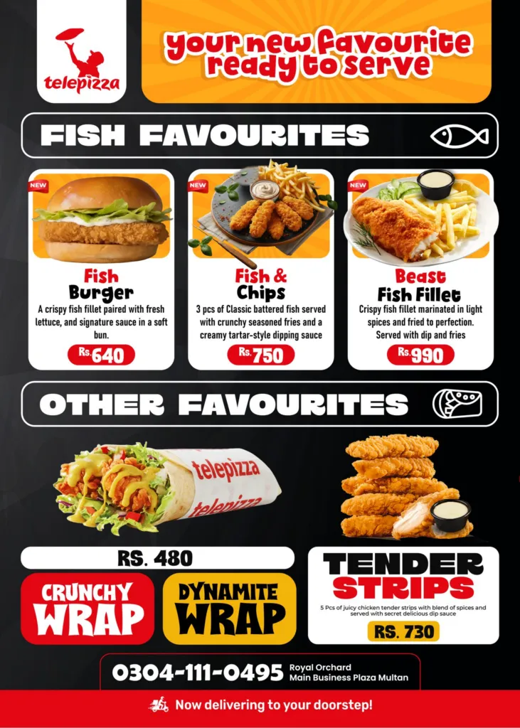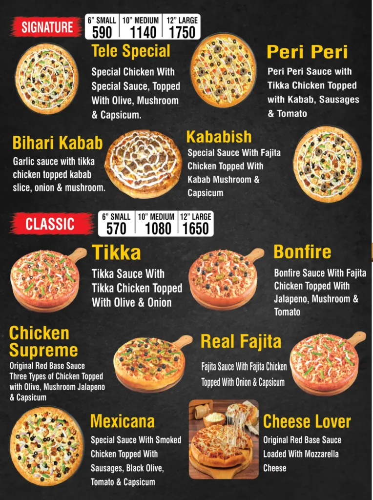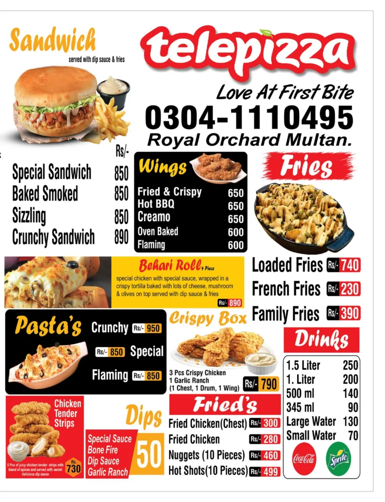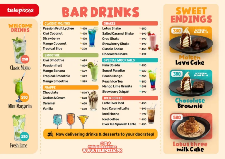 Telepizza is a popular spot in Multan known for its “Crispier, Juicier, Better” food. They offer a huge variety of fusion pizzas, juicy injected broast, smash beef burgers, and a wide range of refreshing bar drinks and mocktails.