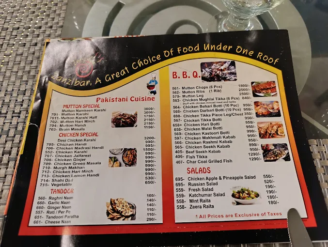 Zanzibar Restaurant Multan offers a complete and diverse menu that includes BBQ, karahi, handi, rice dishes, fast food, and desserts. With reasonable pricing, family-friendly environment, and wide food variety, it remains a popular dining choice for people in Multan who enjoy traditional and modern flavors under one roof.